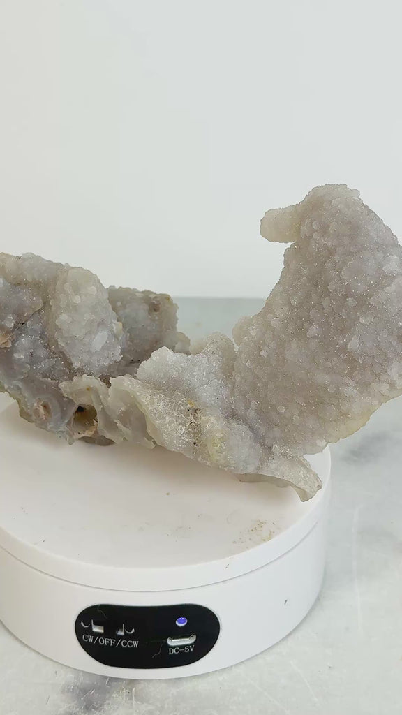 Sugar Chalcedony from Maharashtra, India is a captivating form of chalcedony crystal known for its delicate, sugary druzy surface and soft translucent colors that make it a stunning addition to any crystal collection or spiritual space. This unique material forms when microcrystalline silica slowly fills cavities in volcanic rock, creating velvety chalcedony stalactites and druze that shimmer with light, and is sourced from notable mineral localities in Maharashtra, India such as the Jalgaon mining region, celebrated among collectors for these rare druzy chalcedony formations.