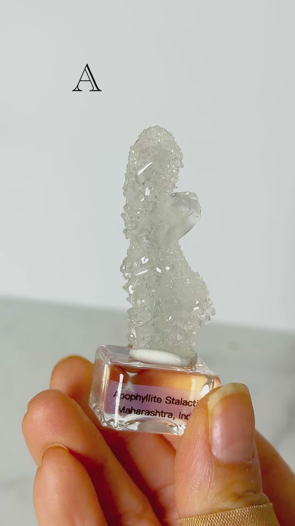 Highly regarded for its clarity-enhancing and spiritually uplifting qualities, apophyllite stalactite is treasured by collectors and practitioners alike for its ability to elevate consciousness while maintaining a calm, peaceful presence.